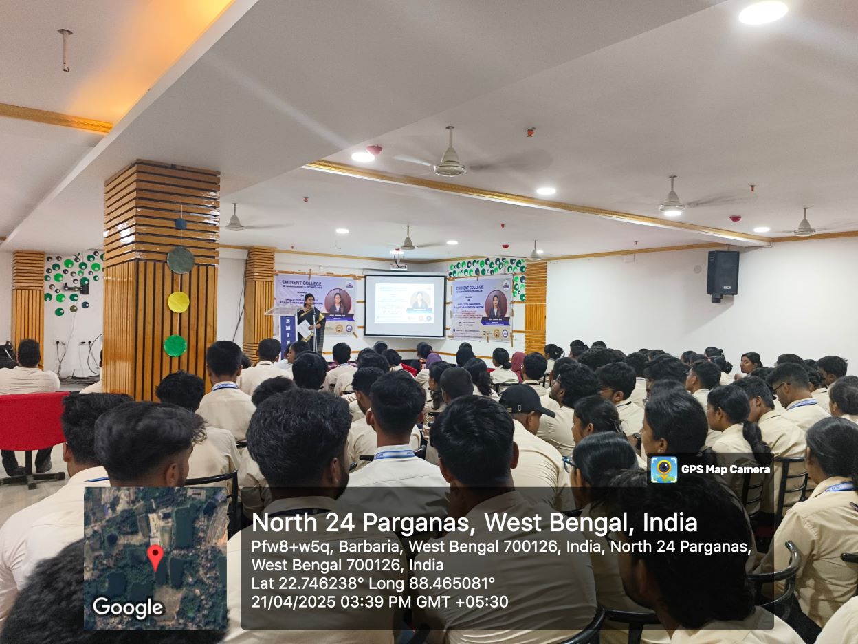 SHIELD 2025 was organized on 21 April 2025 as a joint initiative of the Internal Complaints Committee (ICC) and the Anti-Ragging Committee (ARC). The programme included awareness sessions for both students and faculty members. The session was conducted by Adv. Rimpa Pai, External Member of the ICC, Eminent College of Management and Technology. It was an enriching and informative programme that highlighted legal safeguards, institutional mechanisms, and the collective responsibility to ensure a safe and respectful academic environment.